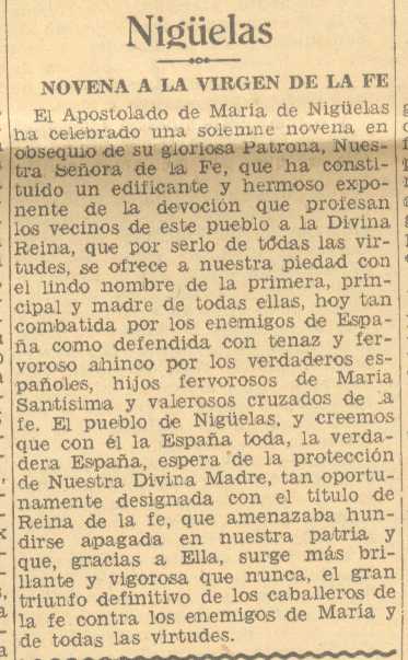 18 de septiembre de 1937. Novena a la Virgen de la Fe en Nigüelas