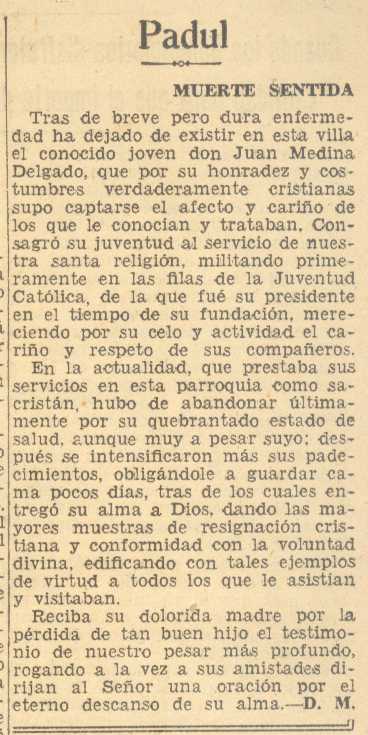 29 de septiembre de 1937. Fallece en el Padul Don Juan Medina Delgado