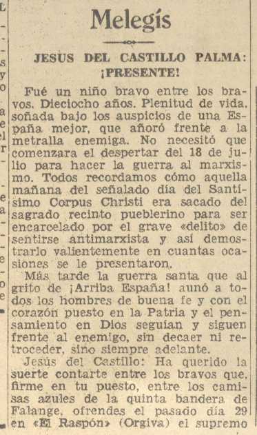 5 de septiembre de 1937. Muere en la guerra Don Jesús del Castillo Palma de Melegís