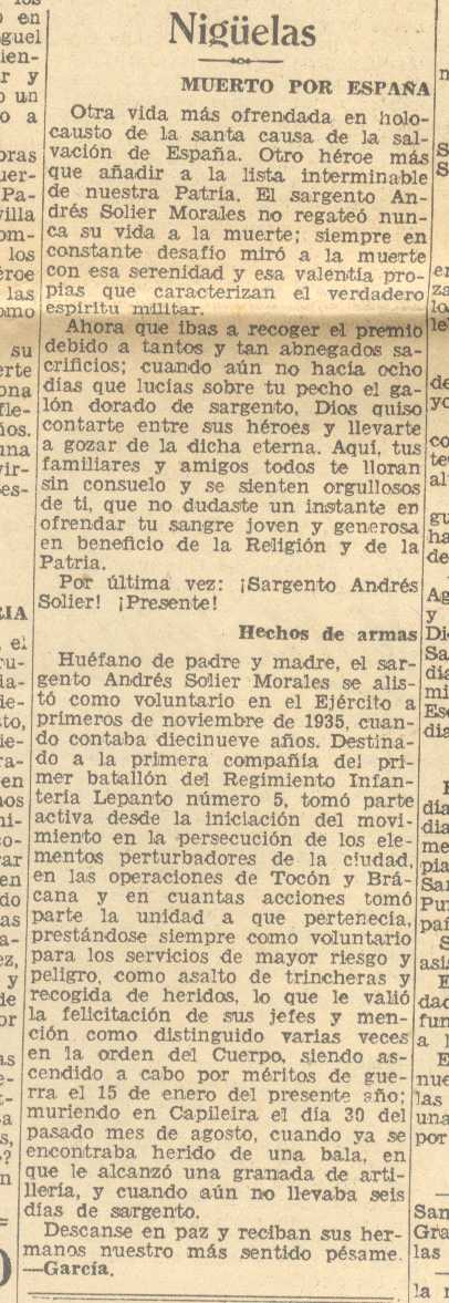 7 de septiembre de 1937. Muere en la guerra Don Andrés Solier Morales de Nigüelas