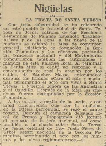 19 de octubre de 1938. Fiesta de Santa Teresa en Nigüelas, patrona de la Sección Femenina