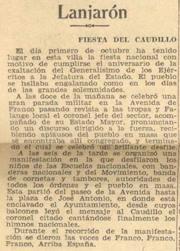 5 de octubre de 1938. Se celebra en Lanjarón la fiesta del Caudillo