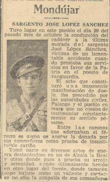 10 de noviembre de 1938. Muere en la guerra Don José López Sánchez de Mondújar