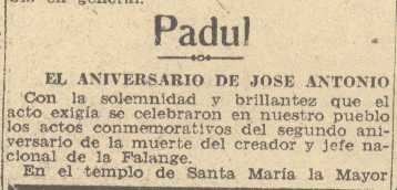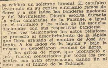 25 de noviembre de 1938. Se celebra en el Padul el segundo aniversario de la muerte de José Antonio