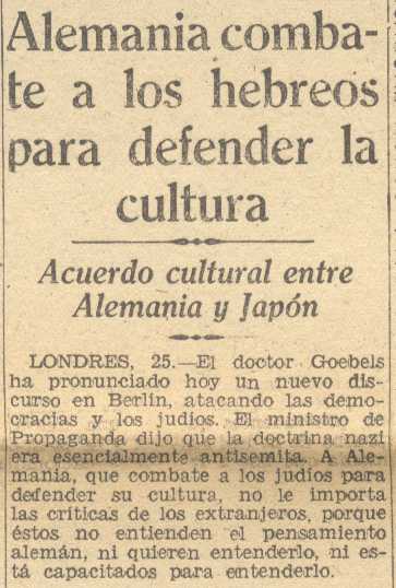 26 de noviembre de 1938. Alemania combate a los hebreos para defender la cultura