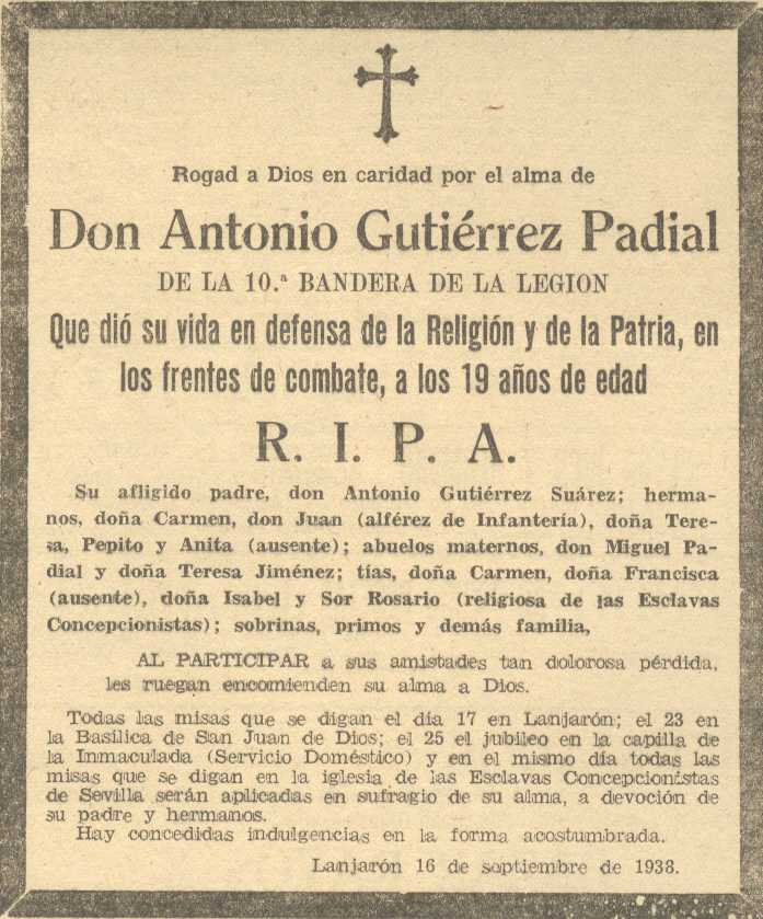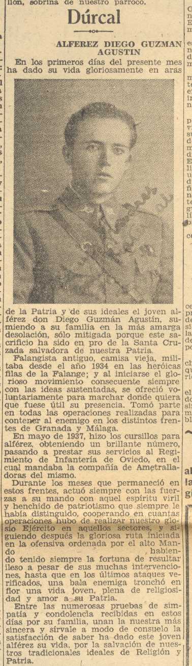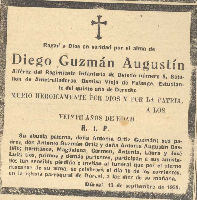 20 de septiembre de 1938. Fallece en la guerra Don Diego Guzmán Agustín de Dúrcal