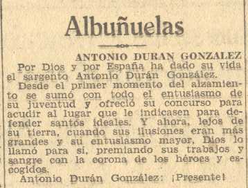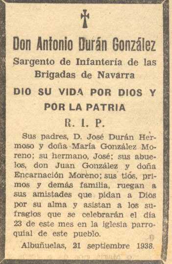 24 de septiembre de 1938. Muere en la guerra Don Antonio Durán González de Albuñuelas