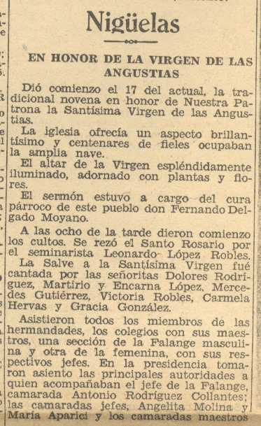 22 de septiembre de 1938. Fiesta en Nigüelas en honor de la Virgen de las Angustias