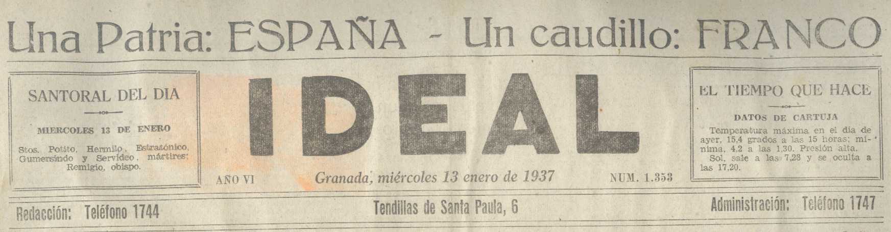 El periódico Ideal no dispone de una hemeroteca histórica vía Internet, por lo que es difícil buscar el periódico, y eso que en él está reflejada la historia de la provincia de los últimos 80 a 90 años