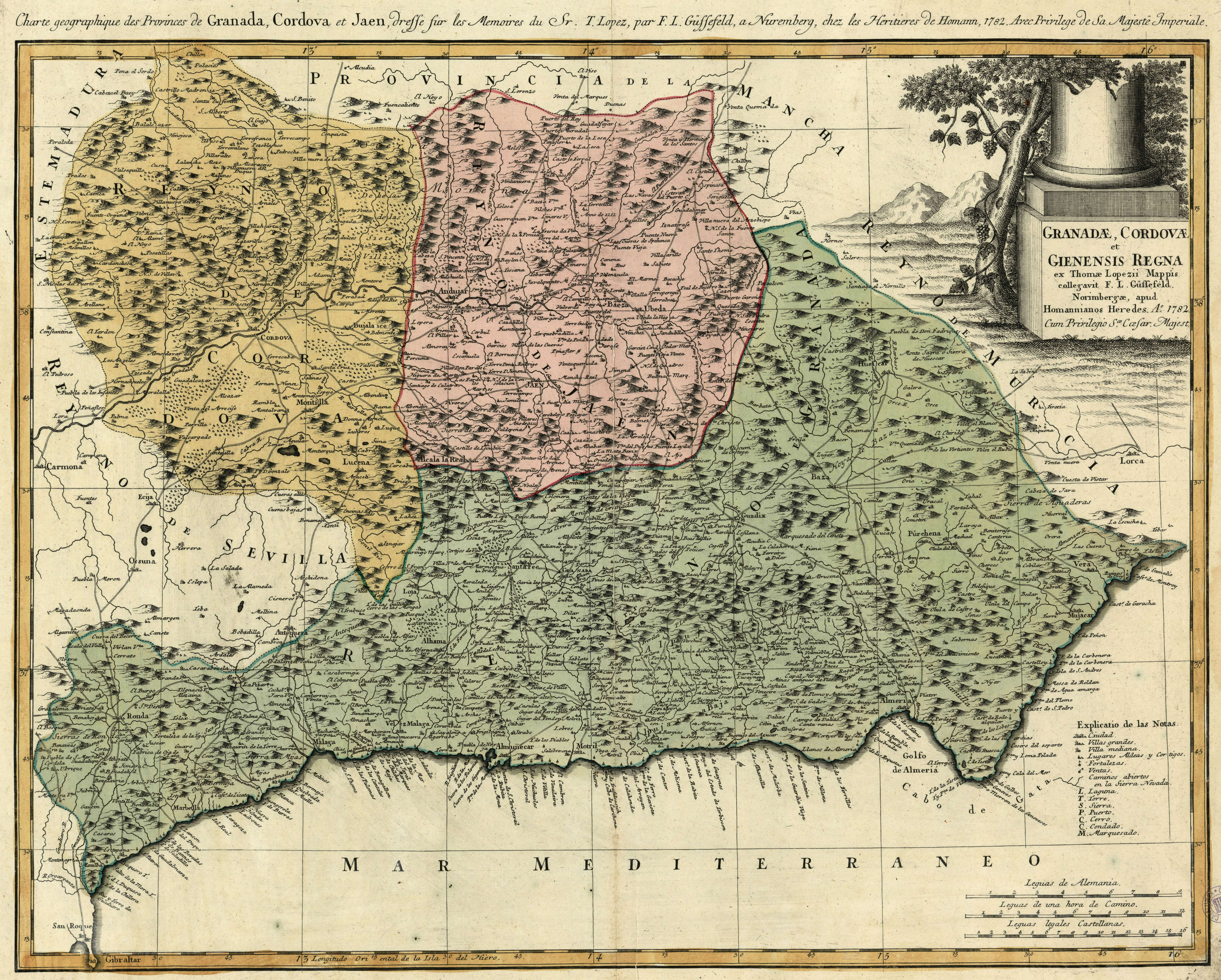 Mapas que completan la representación del territorio Granada tras la restauración absolutista de Fernando VII en 1825. Revisten particular interés editorial. Además de su rareza, les confiere especial relevancia su técnica de impresión, ya que constituyen una muestra pionera entre la cartografía de Andalucía de estampación en litografía.