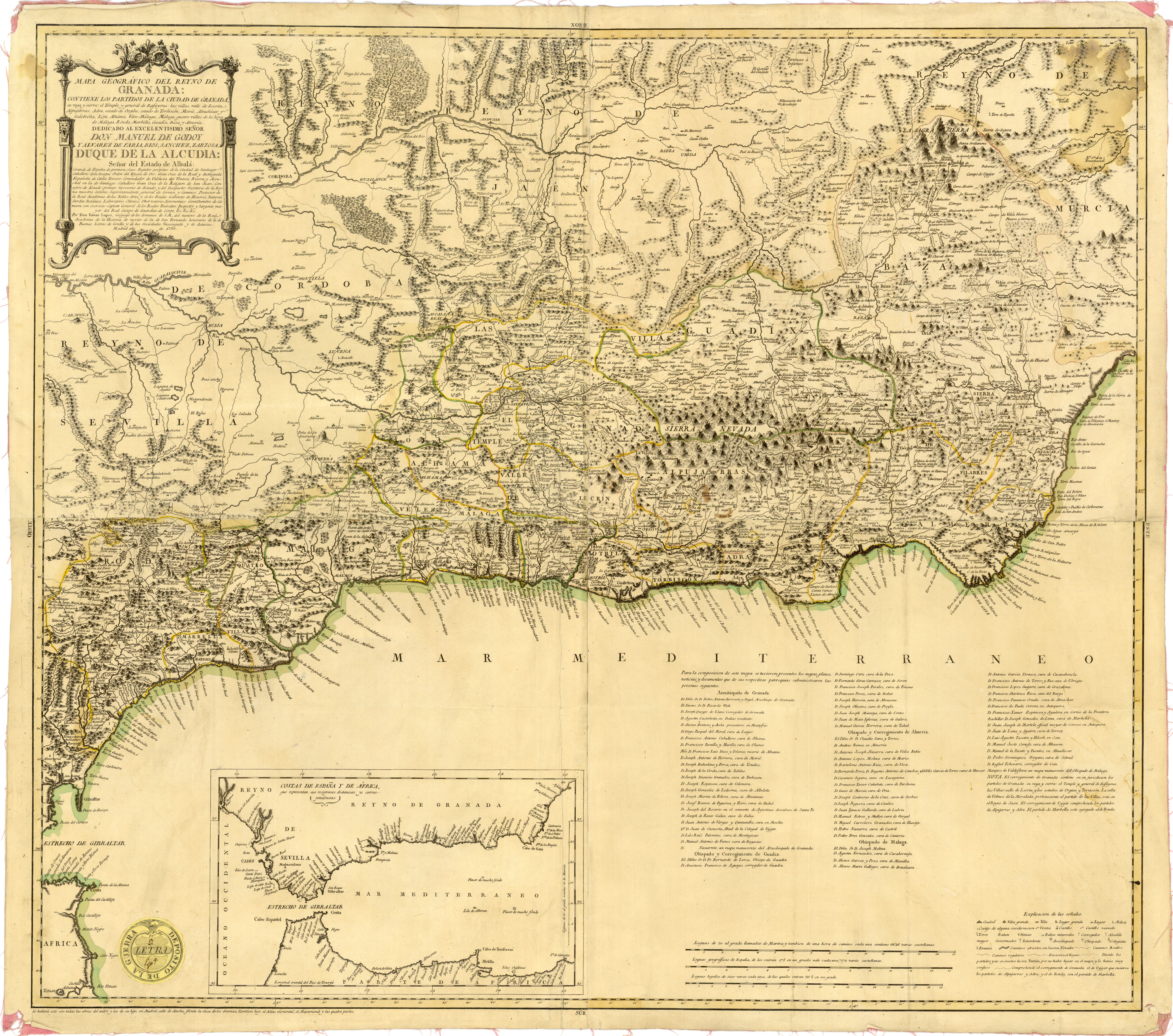 Granada (Provincia). Mapas generales. 1795. Con el Valle de Lecrín y sus caminos