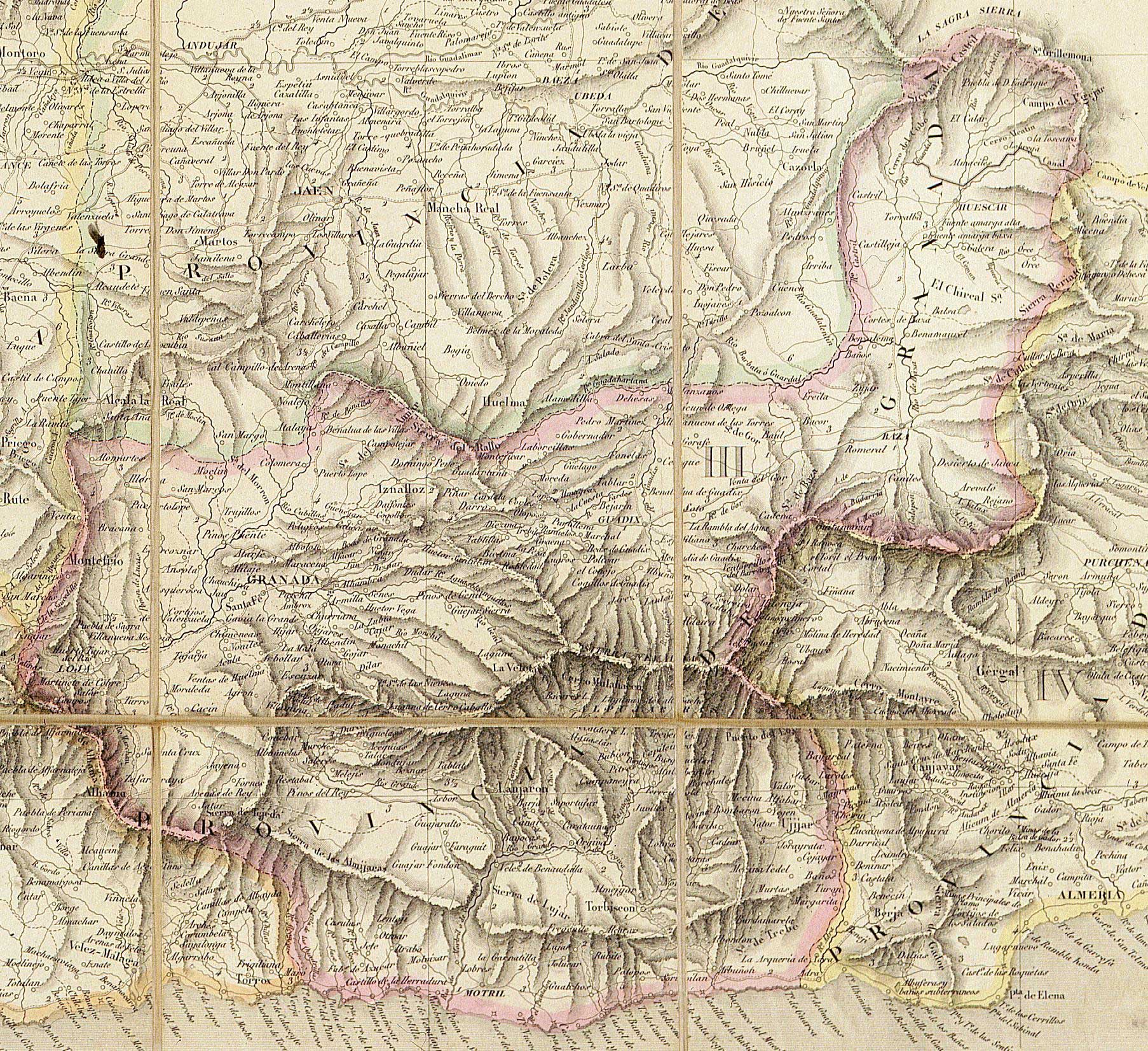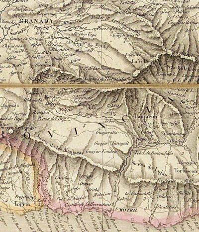 Mapa de la provincia de Granada recién creada (1836)