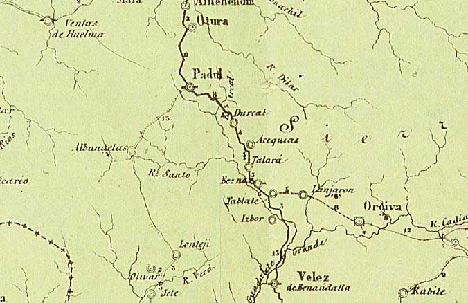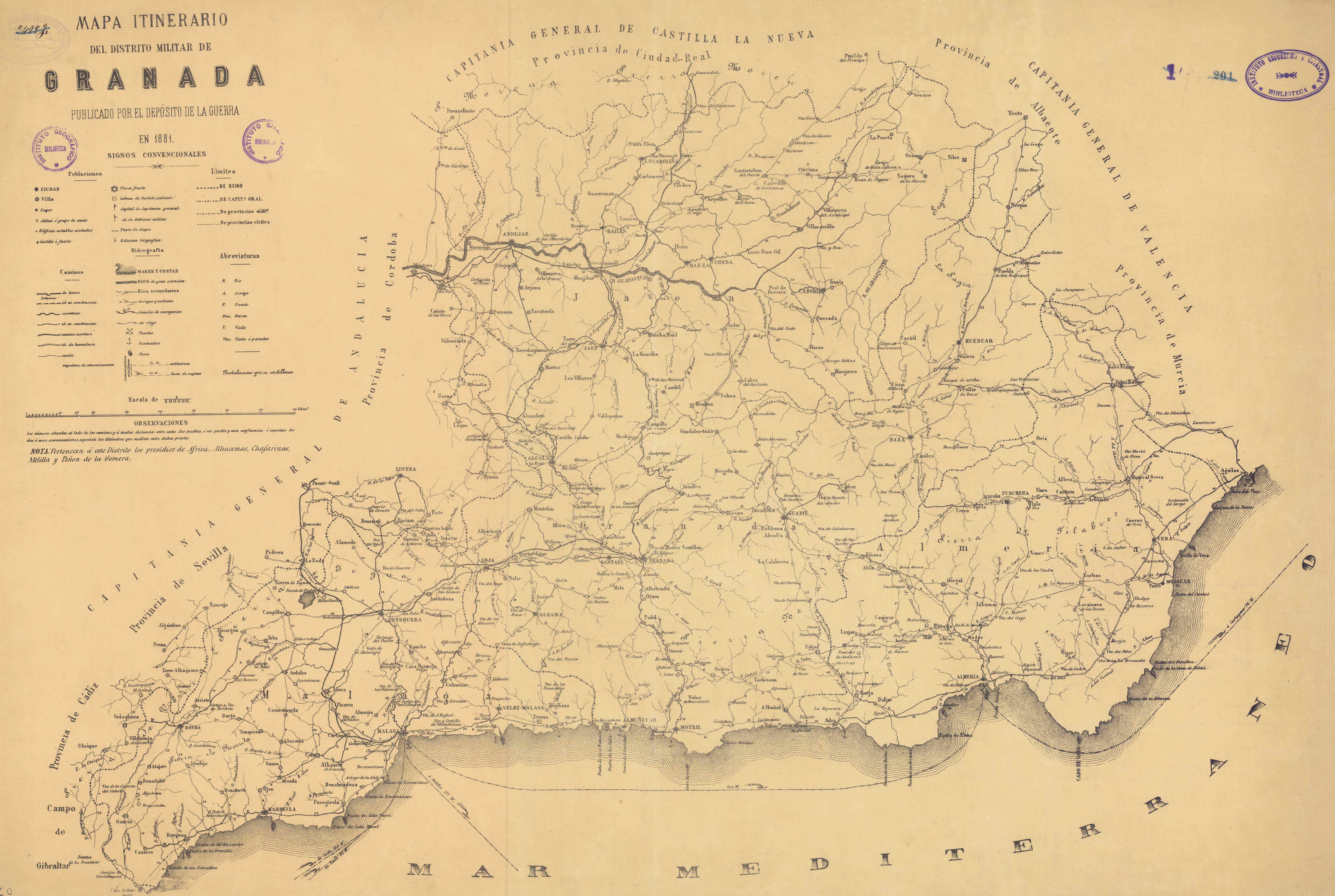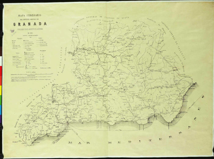 Granada (Distrito Militar).. Mapas generales.1881. Mapa itinerario del Distrito militar de Granada-1:500.000.,en 1881 1 mapa;63 x 87 cm