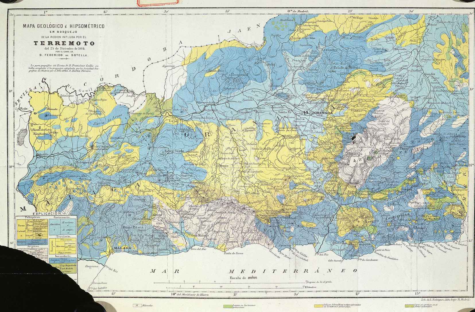 Mapa geológico e hipsométrico en bosquejo de la región influida por el terremoto