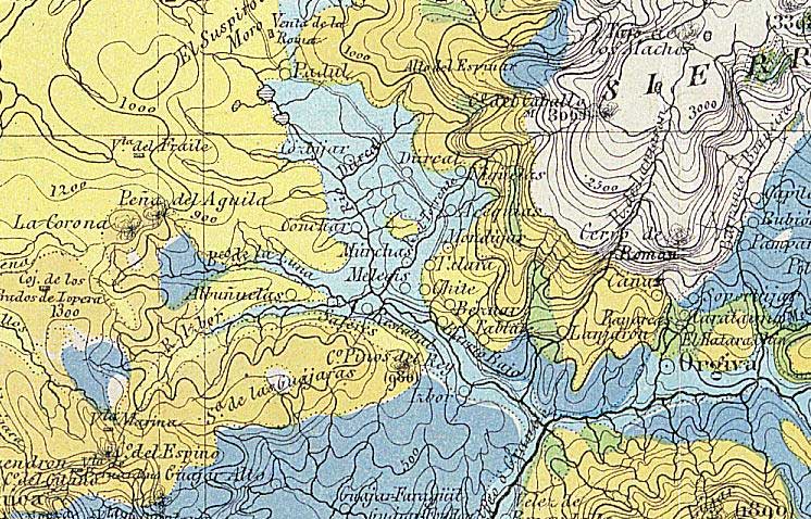 Longitud referida a los meridianos de Hierro y Madrid. - Relieve representado