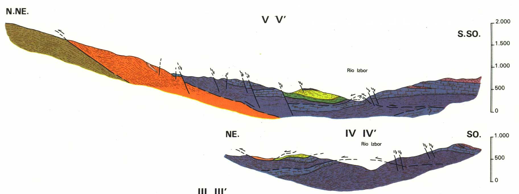 Cortes geológicos y columna estratigráfica