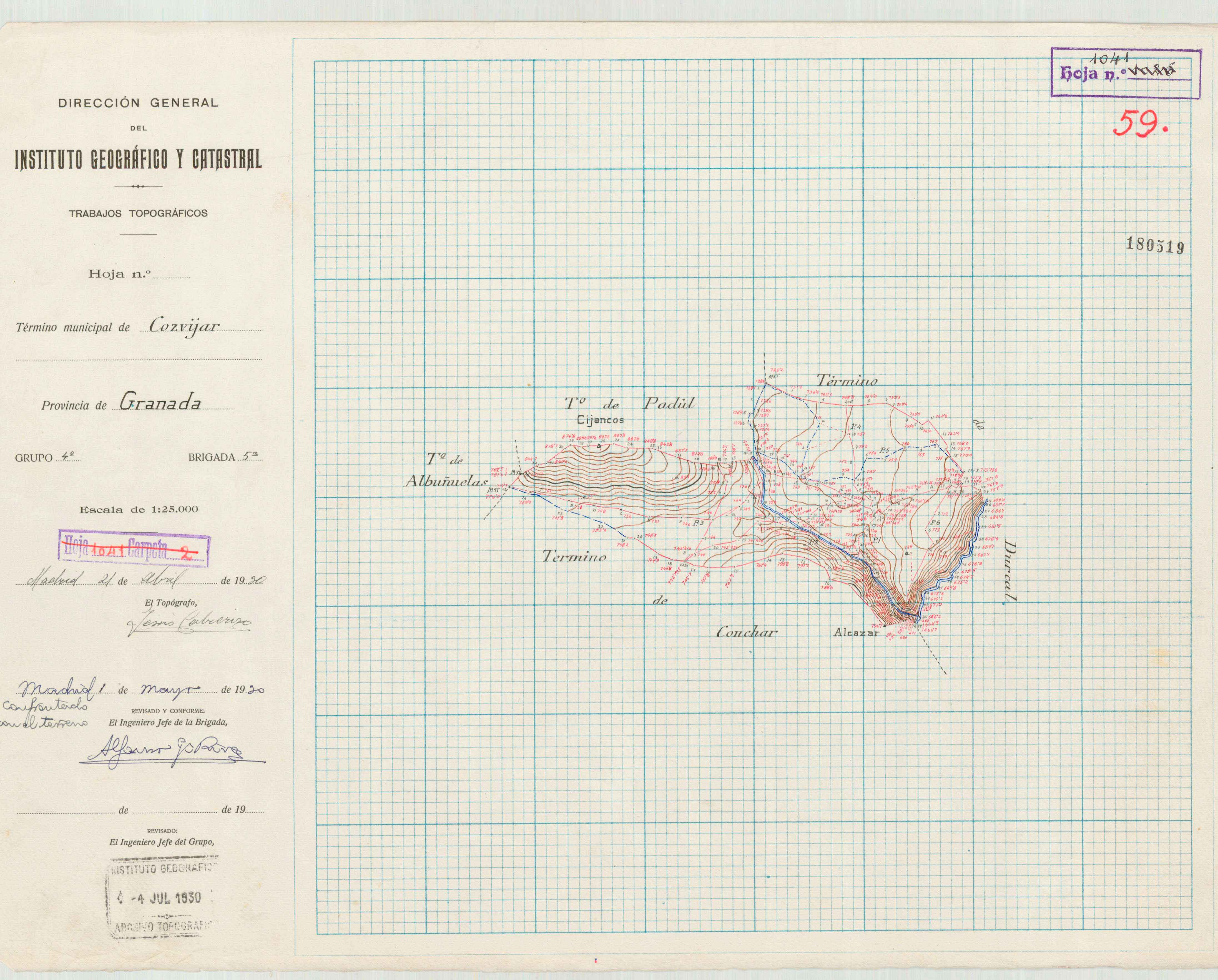Cozvíjar. Curvas de nivel. 1930