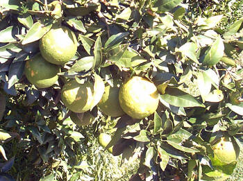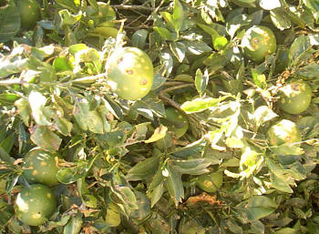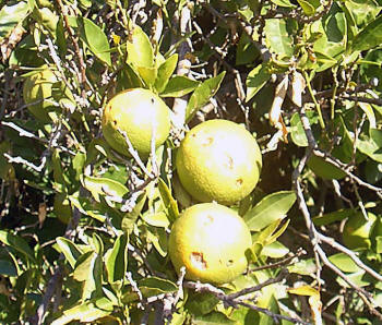La lluvia vino acompañada de fuertes y grandes granizos en la zona, que como se ve ha deteriorado a la naranja |