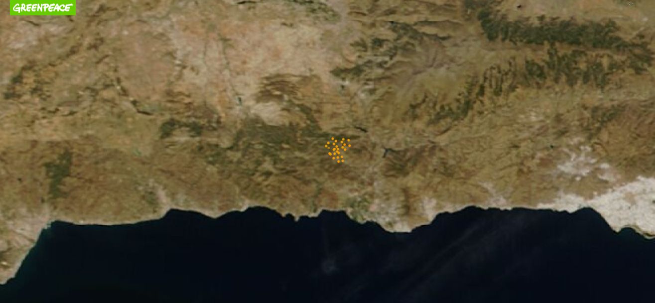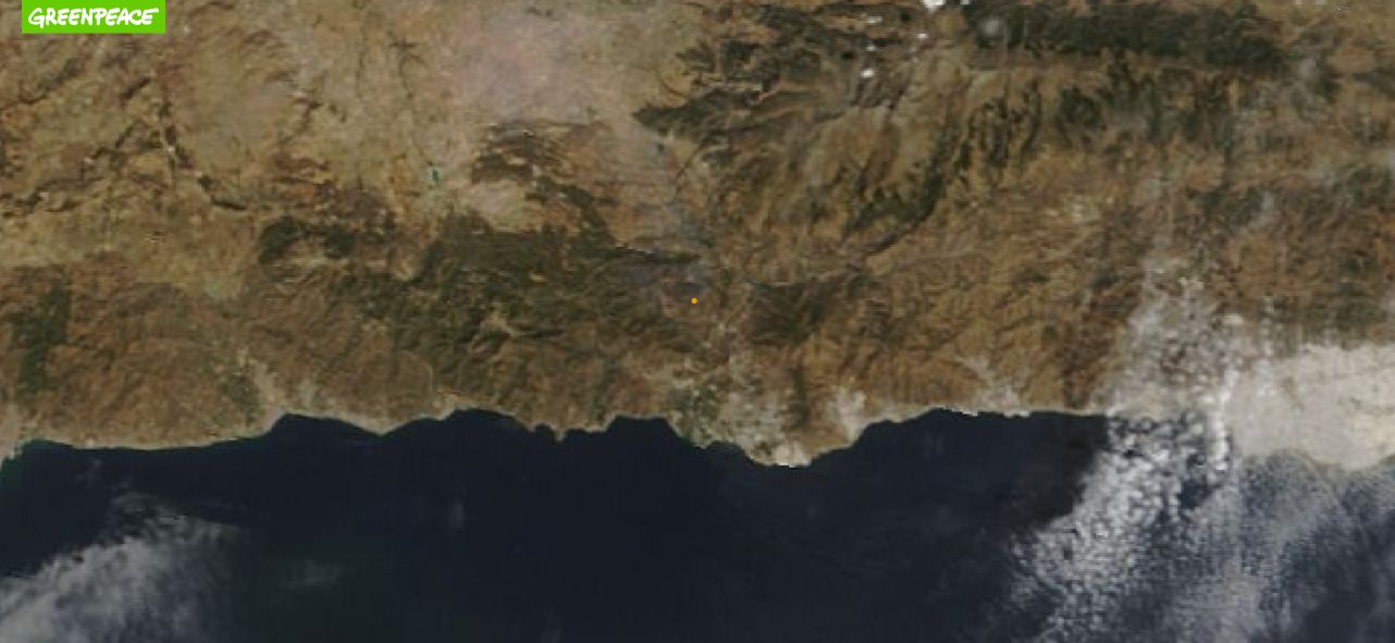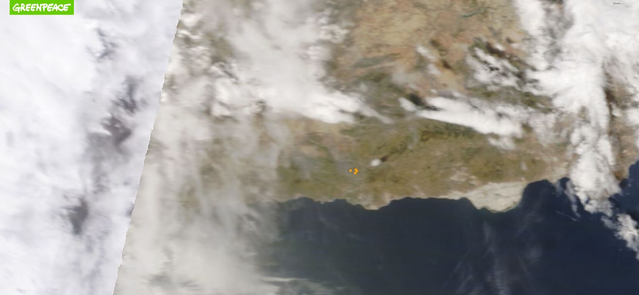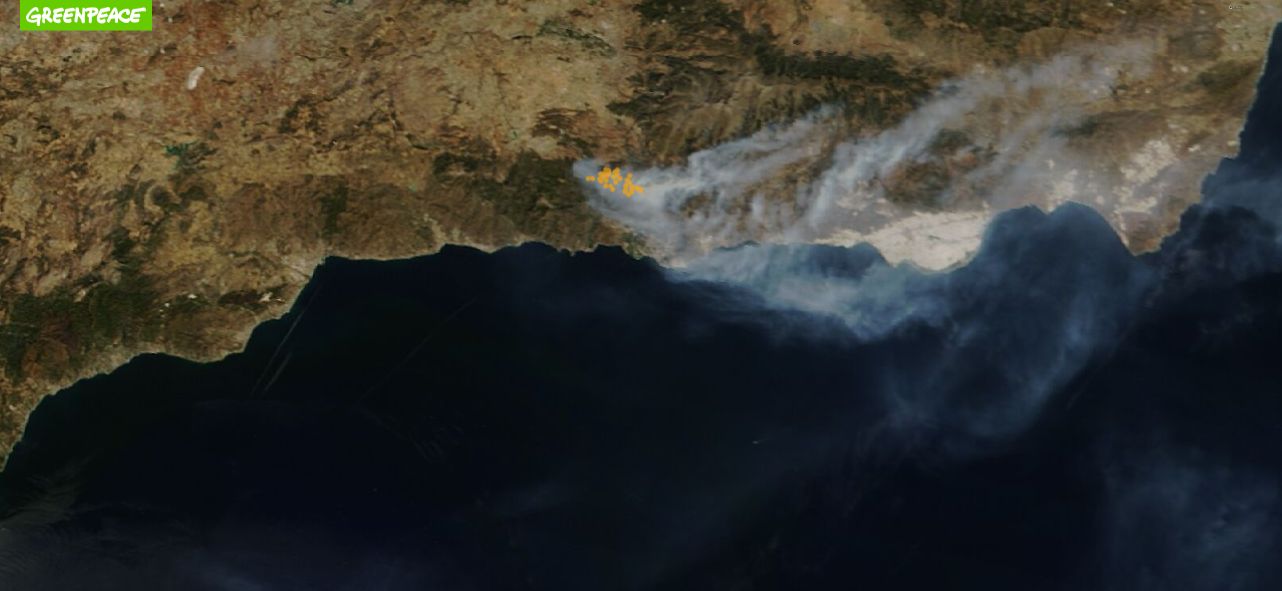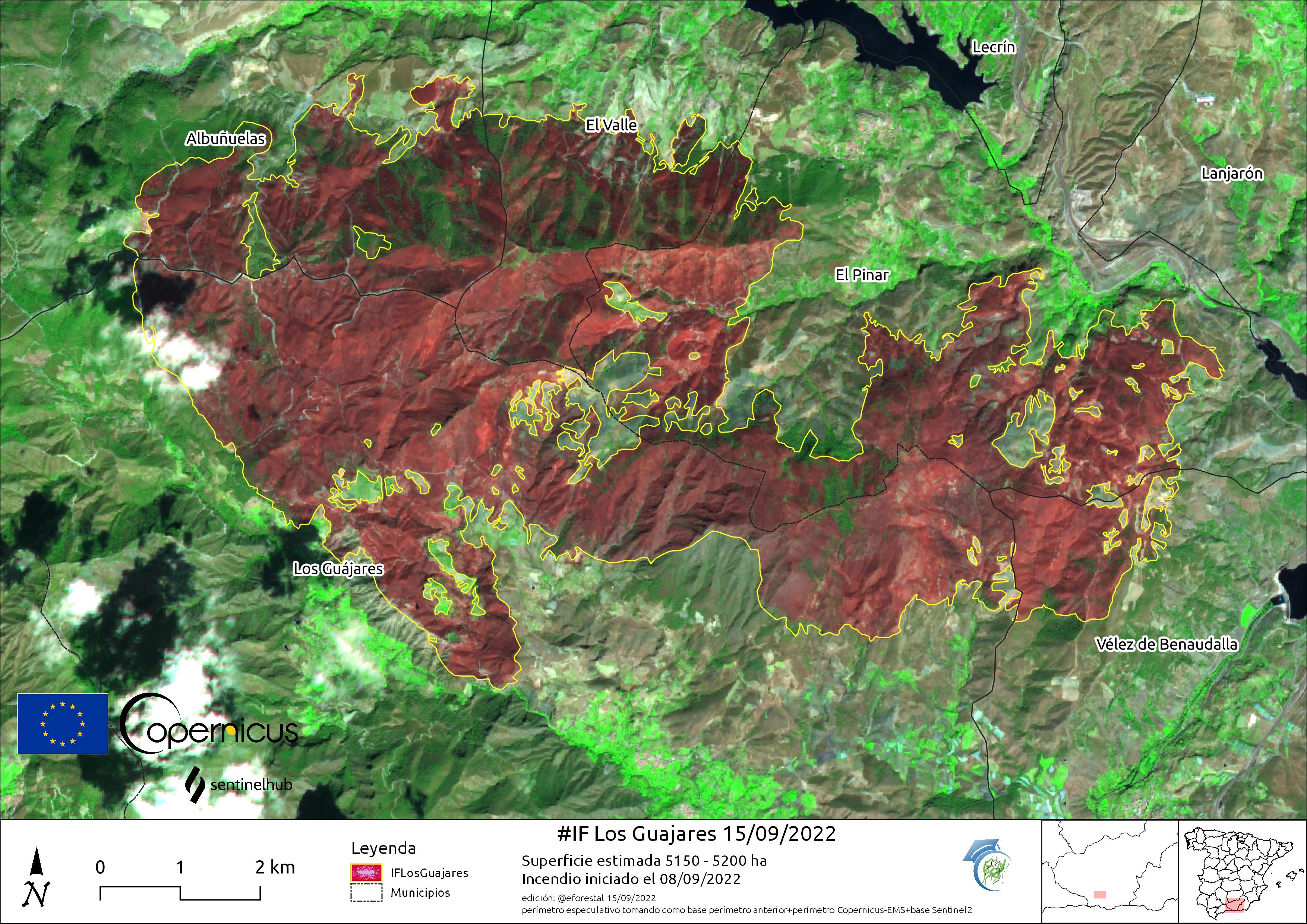 Vista satélite del incendio de Los Guájares del sábado (10/10/2022)