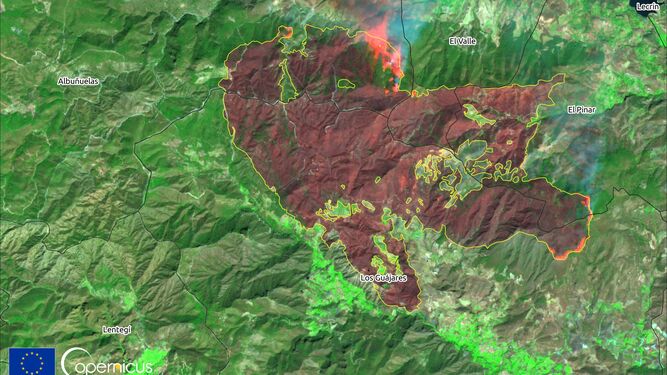 ¿Cómo ha sido la evolución del incendio de Los Guájares en cinco días? La tragedia vista desde el espacio por Copernicus. Granada Digital