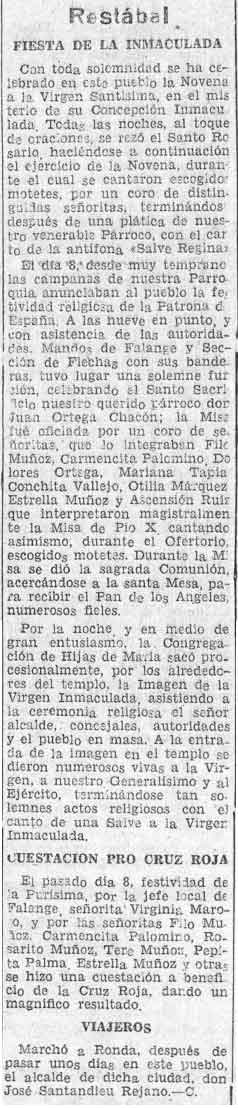 17 de diciembre de 1937. Fiesta de la Inmaculada en Restábal. Párroco Don Juan Ortega Chacón
