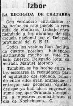 10 de diciembre de 1937. Nombrados delegados locales de la Falange de Cónchar. Ha sido visitados por sus delegados Padul y faltan aún por enviar su acta de integración Acequias, Albuñuelas, Béznar, Cozvíjar, Chite, Lanjarón, Melegís, Mondújar, Murchas, Nigüelas, Padul, Pinos del Rey, Restábal, Talará y Saleres