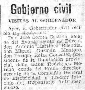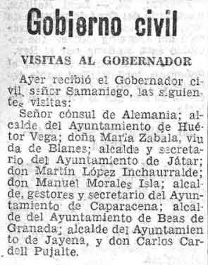 18 de febrero de 1938. Visito al Gobernador Civil el alcalde de Dúrcal Don José Correa Castilla