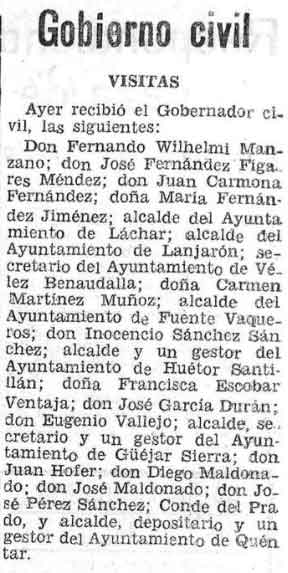 8 de febrero de 1938. Visita al Gobernador Civil el acalde de Lanjarón