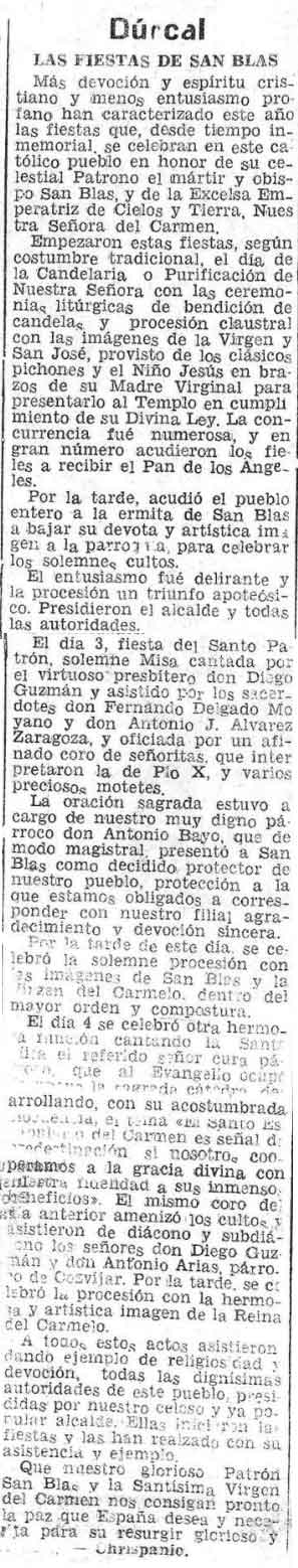 8 de febrero de 1938. Fiestas de San Blas en Dúrcal. Párroco Antonio Bayo