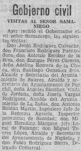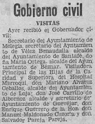 7 de junio de 1938. Visitan al Gobernador Civil el alcaldes y secretarios de Saleres y de Nigüelas