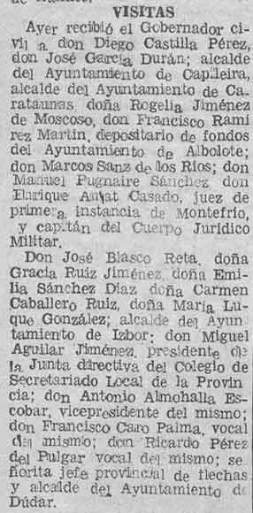 3 de junio de 1938. Visita al gobernador el alcalde de Ízbor Don Miguel Aguilar Jiménez