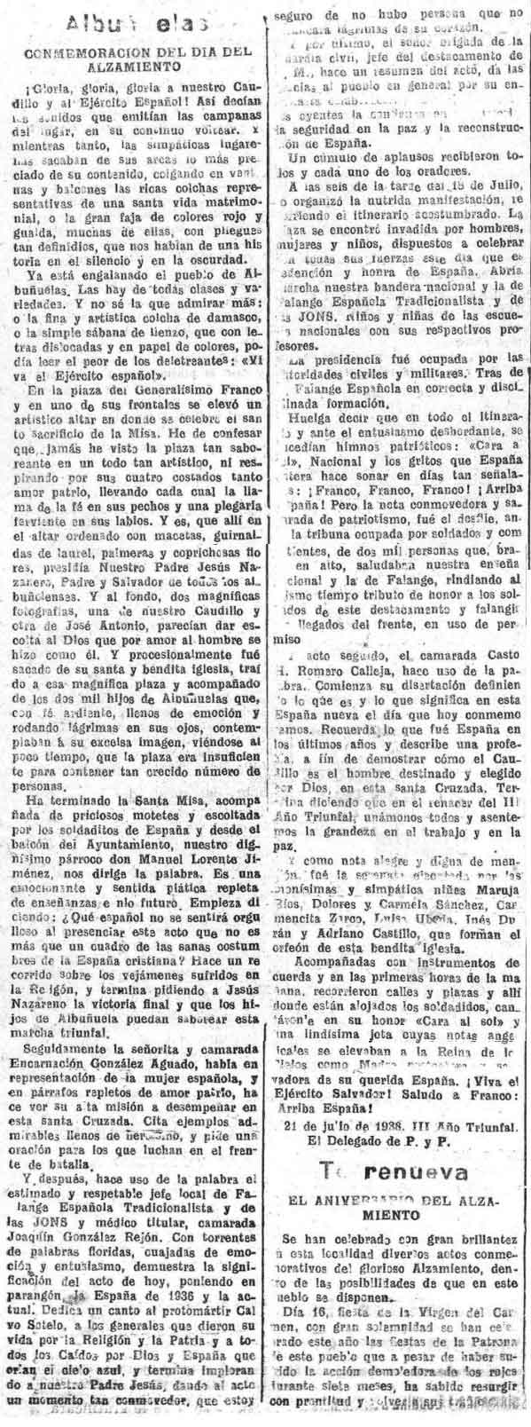 26 de julio de 1938. Conmemoración del Día del Alzamiento en Albuñuelas. Párroco Manuel Lorente Jiménez.