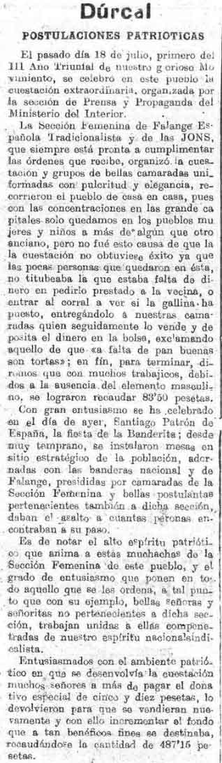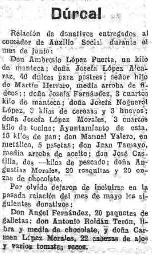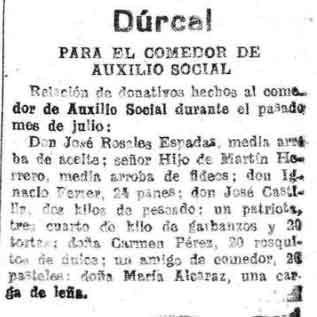 7 de agosto de 1938. Donaciones en Dúrcal para el comedor de Auxilio Social