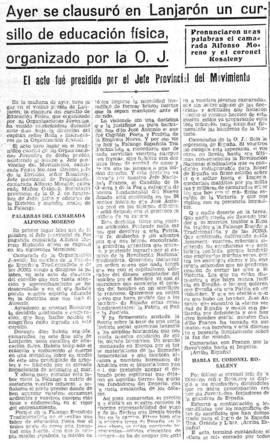 15 de enero de 1939. Cursillo de Educación Física organizado por la O.J. en Lanjarón