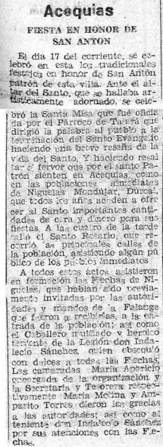 21 de enero de 1939. Fiestas de San Antón en Acequias.
