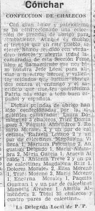 26 de enero de 1939. Confección de chalecos para los combatientes en Cónchar