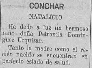 19 de octubre de 1939. Ha dado a luz en Cónchar Doña Petronila Domínguez Urquízar