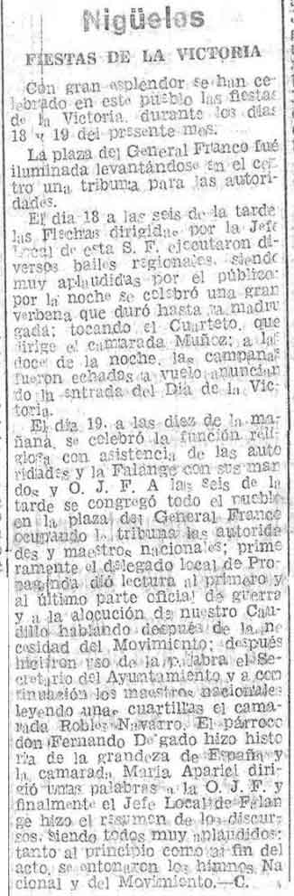 27 de mayo de 1939. Se celebra en Nigüelas la fiesta de la Victoria. Párroco Fernando Delgado