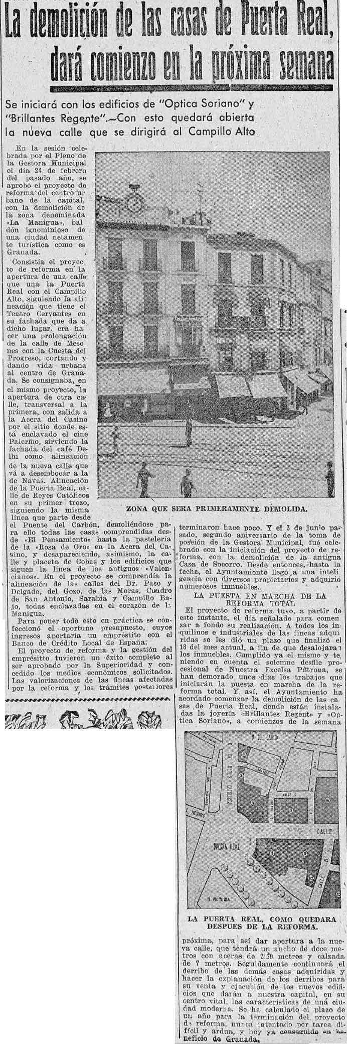 18 de septiembre de 1940. Demolición de casas (Zona de la Manigua) para la reforma de Puerta Real