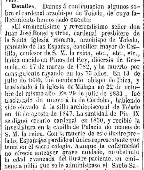 Fallecimiento de Don José Bonel y Orbe13/02/1857