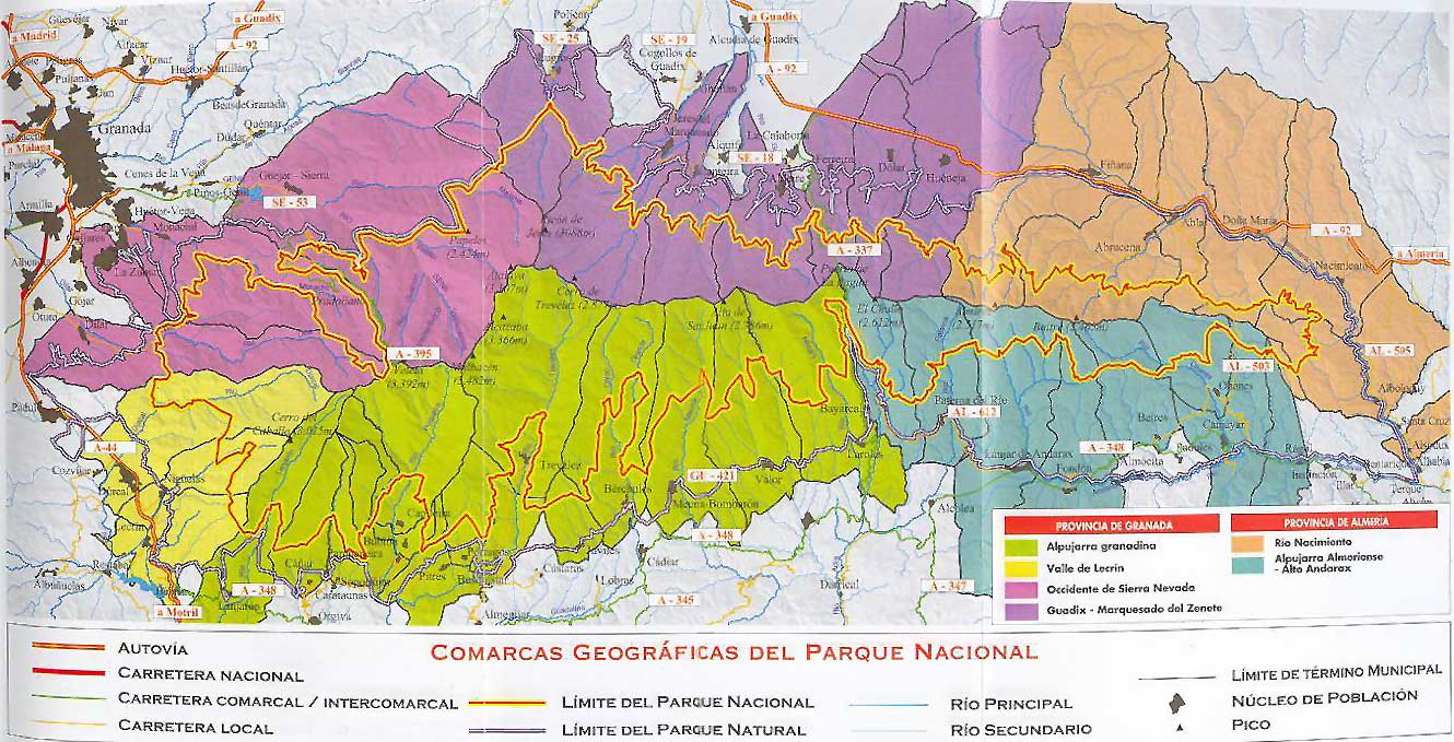 Como consecuencia de este proceso declaratorio, en el macizo de sierra Nevada se encuentran: el Parque Nacional, que ocupa las altas cumbres, y el Parque Natural, periférico al anterior y que incluye ya algunas zonas habitadas y núcleos de población. Se dispone así de una graduación en los niveles de protección del macizo que permite una diferente regulación de los usos y aprovechamientos.