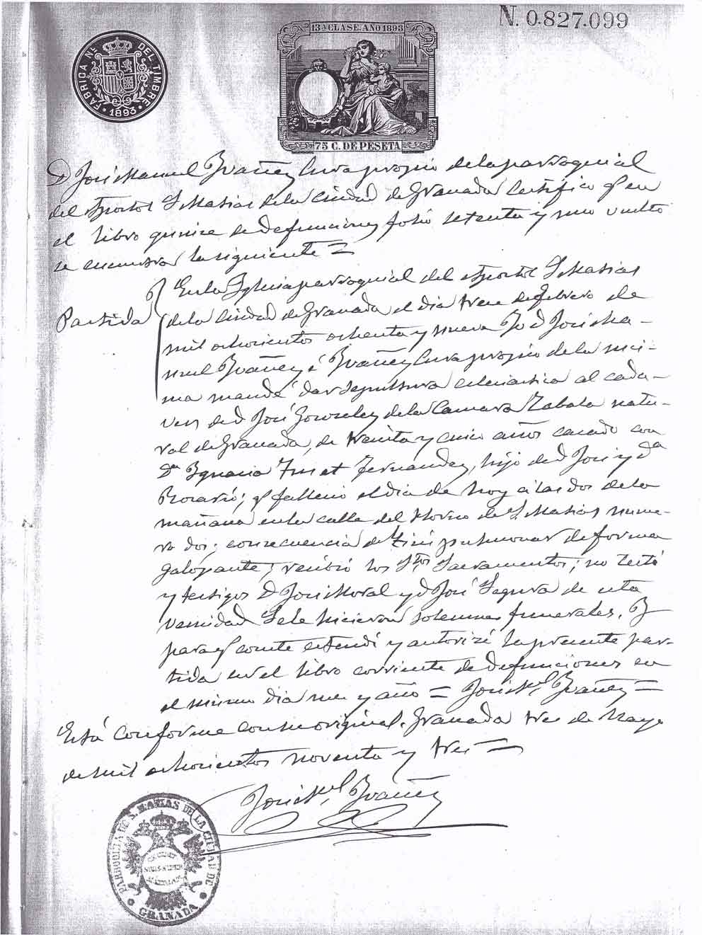 En la ciudad de Granada, a 23 de Diciembre de 1861, D. José Martínez