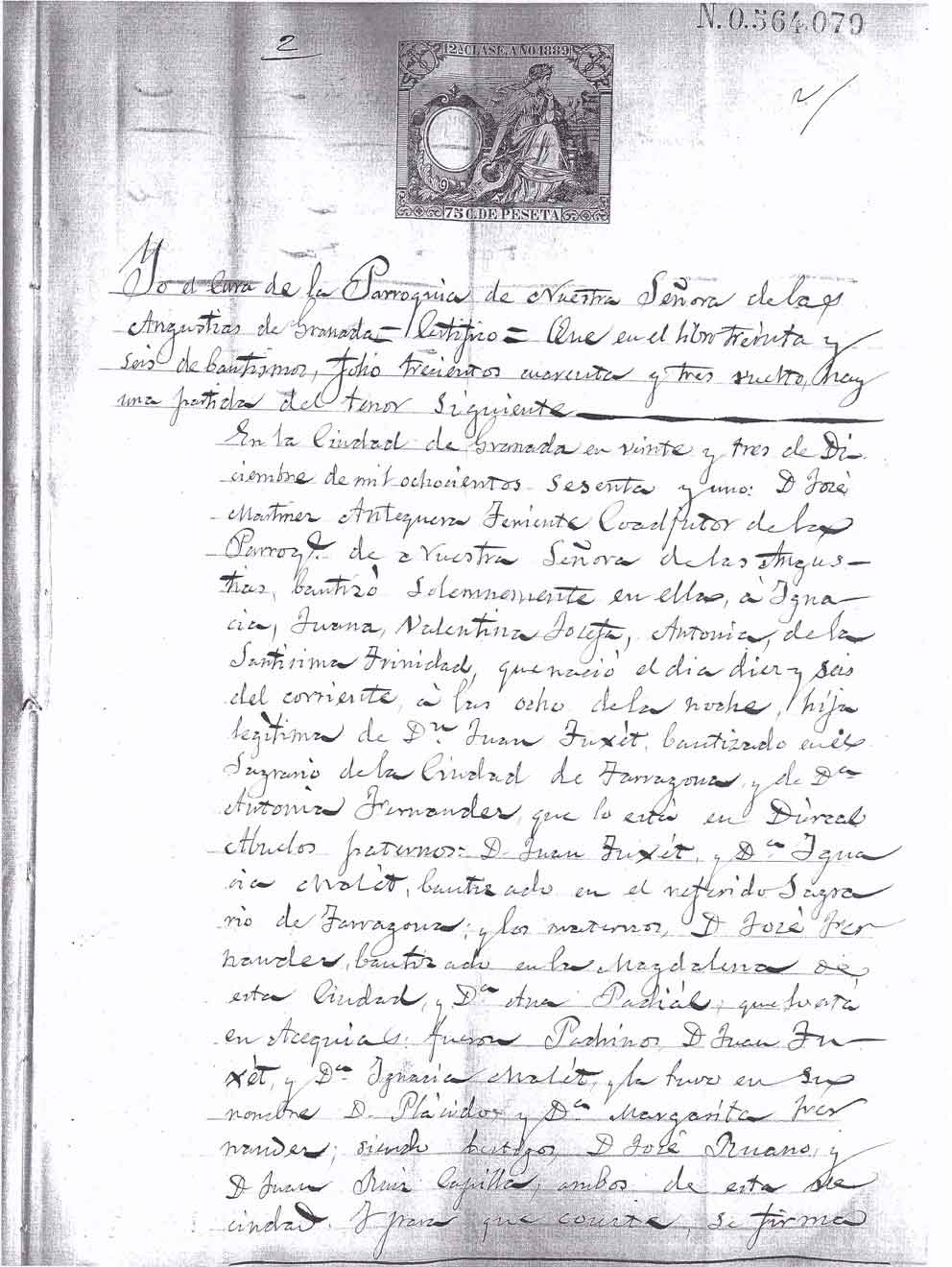 Granada, bautizó solemnemente en ella a Ignacia Juana Valentina Josefa Antonia