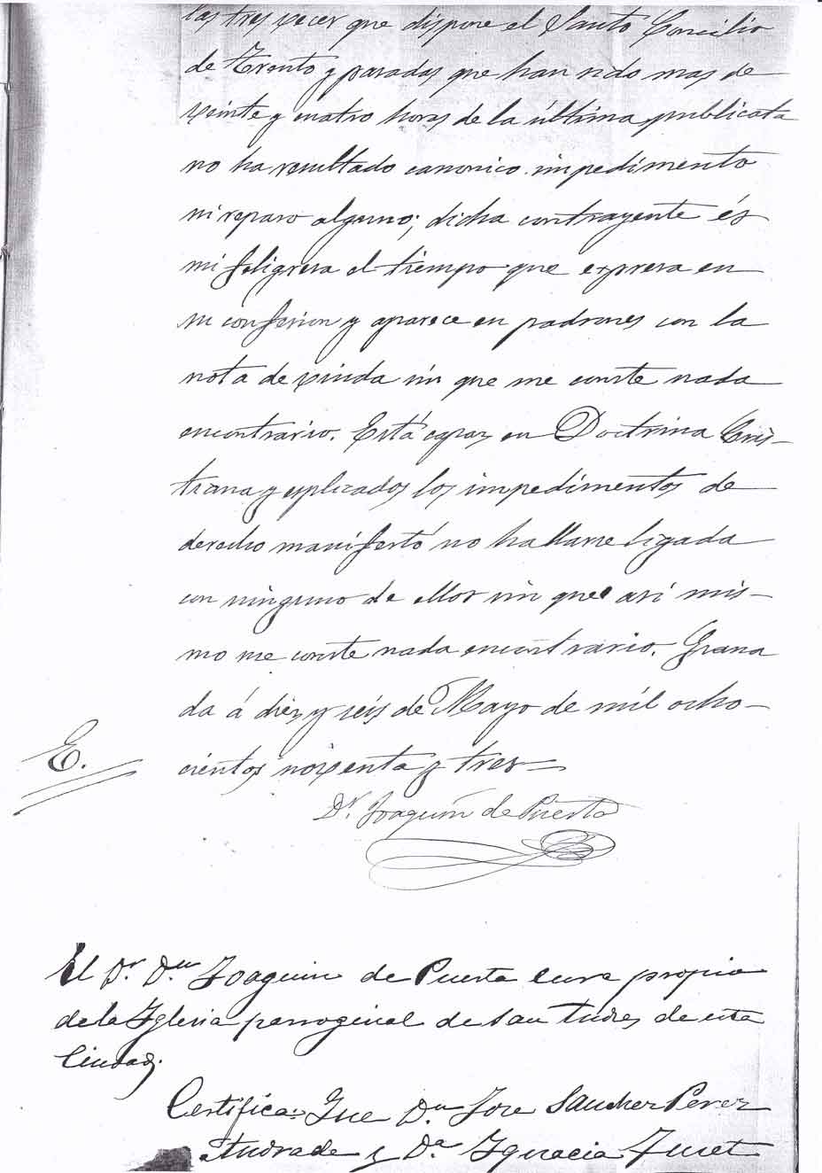Casamiento de Dña. Ignacia Tuset y Fernández en segundas nupcias con D. José Sánchez Pérez de Andrade