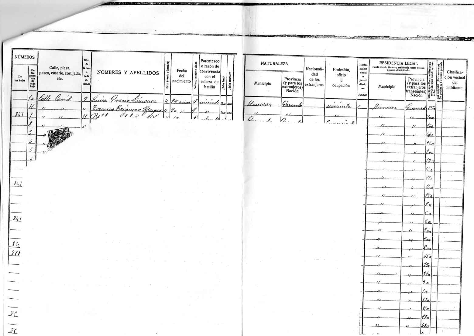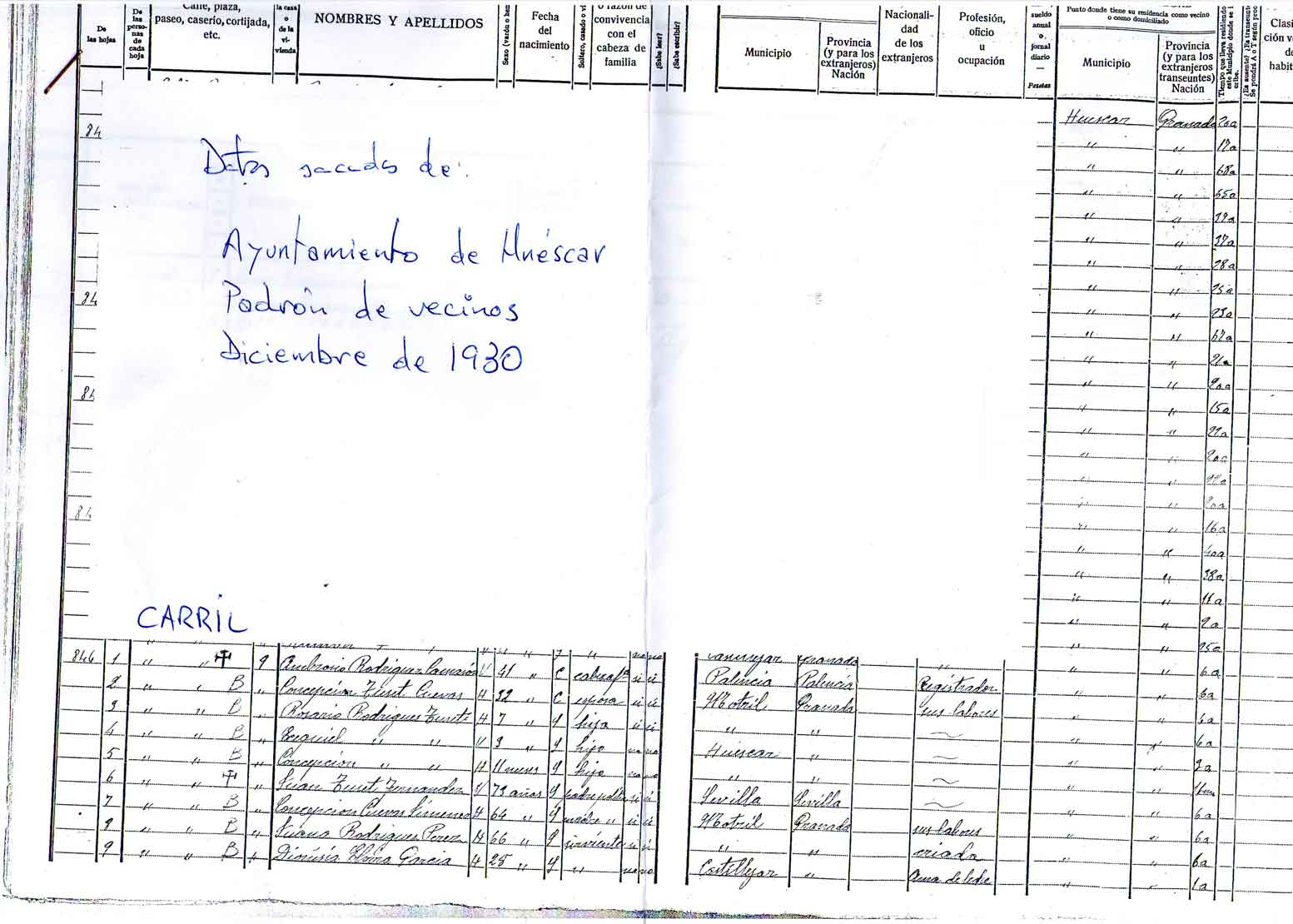 comprobar, las personas que vivían en la Calle del Carril número nueve,