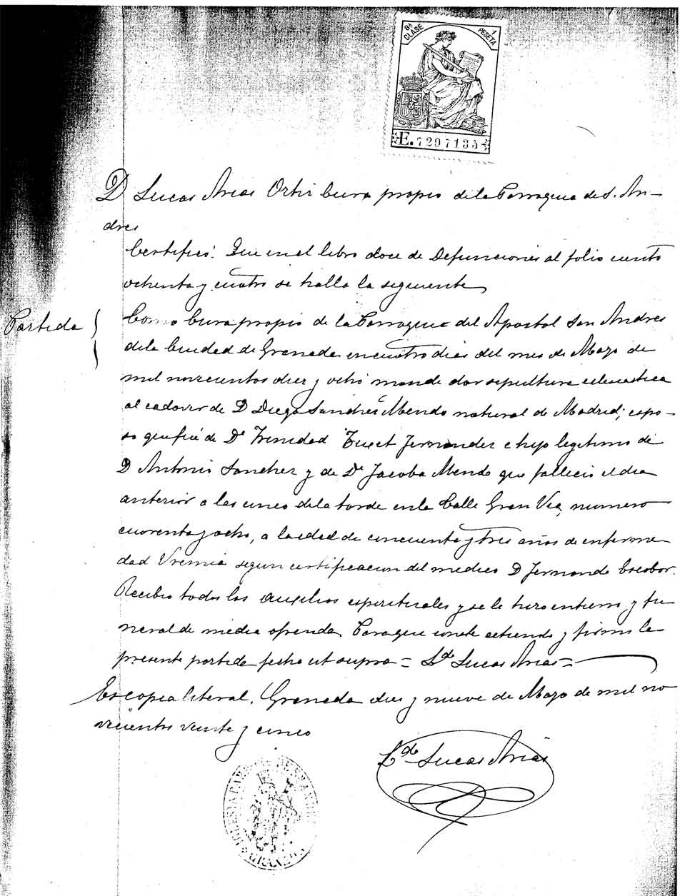 Partida de defunción de D. Diego Sánchez-Puerta y Mendo