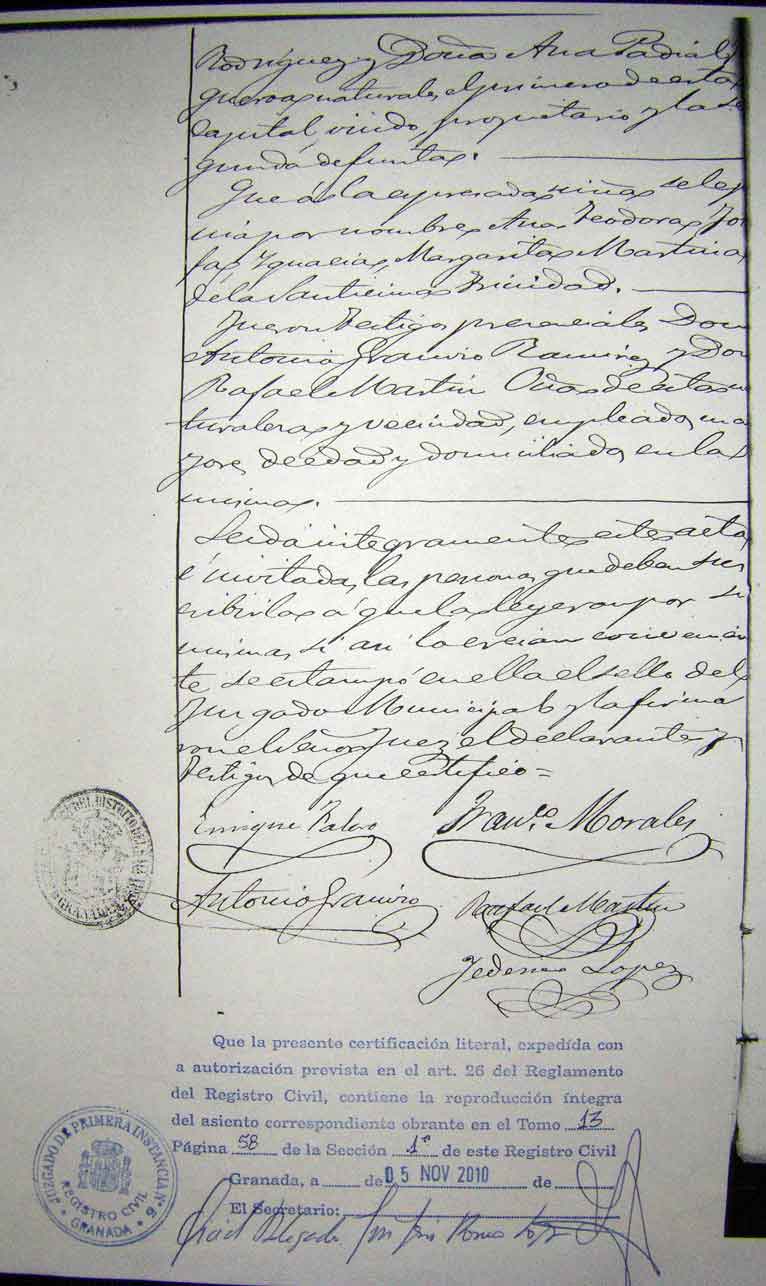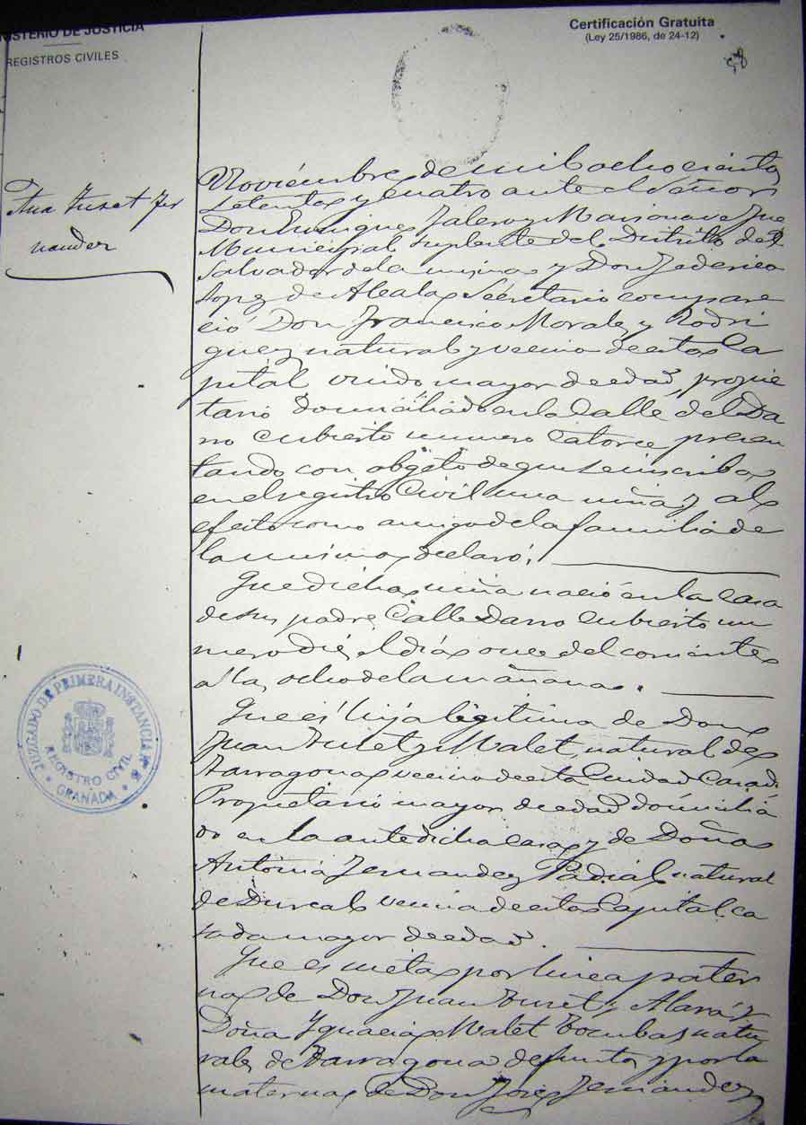 Certificado de nacimiento de Ana Tuset Fernández