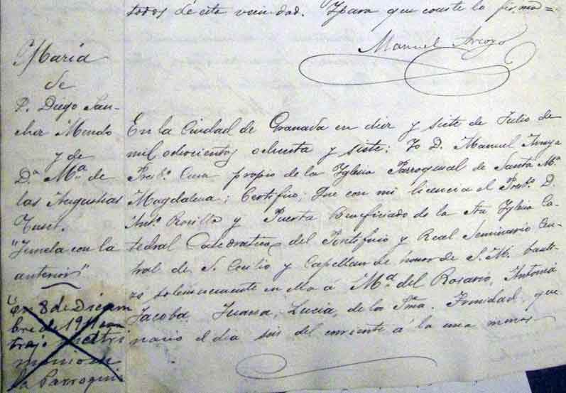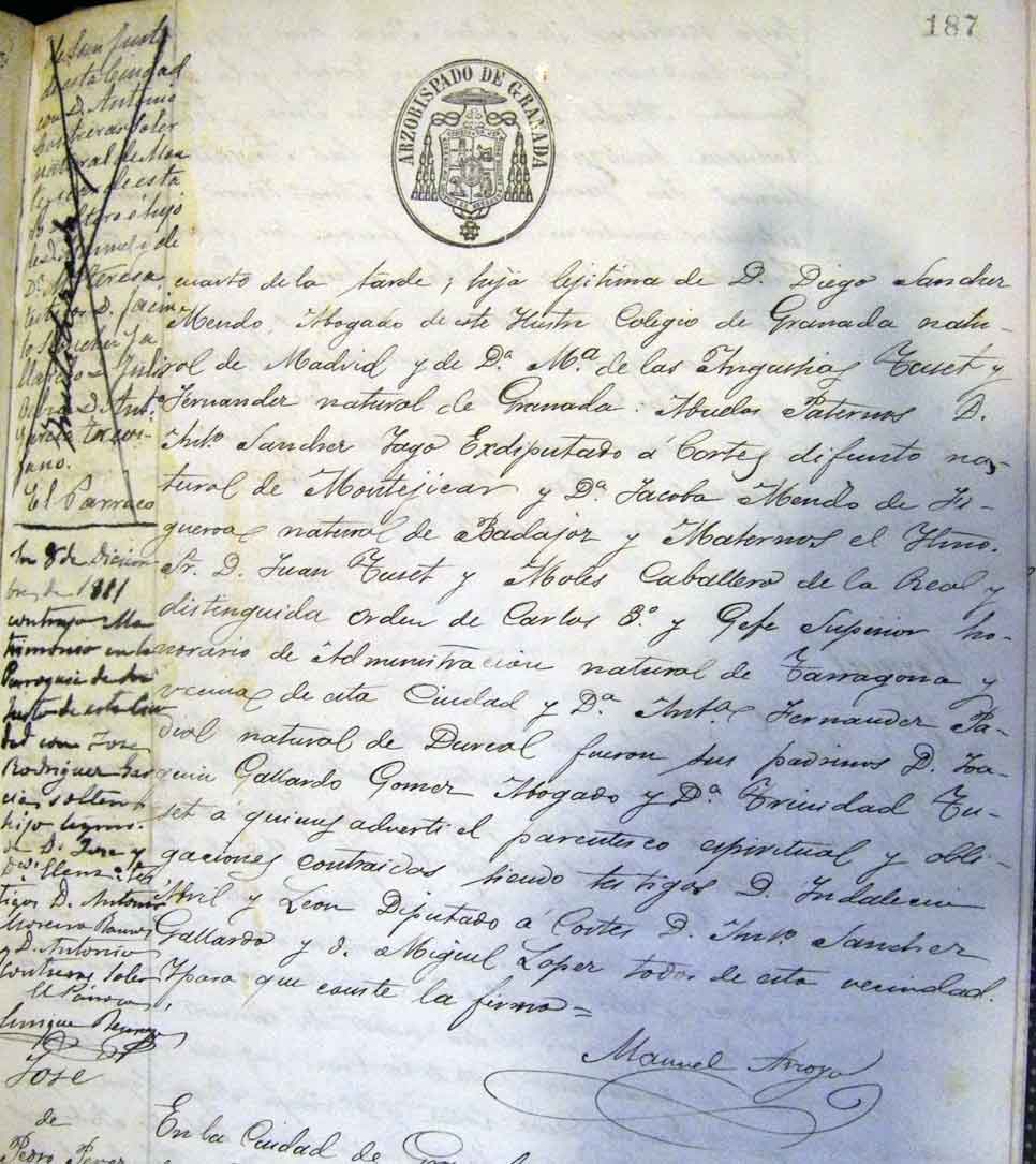 Partida de bautismo eclesiástico de Rosario Sánchez Tuset