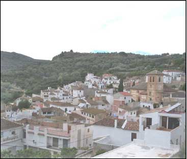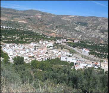 | Vista de Saleres desde el camino que tiene su inicio en el histórico molino de agua | Detalle de la compacta estructura mudéjar de Saleres desde uno de los principales |