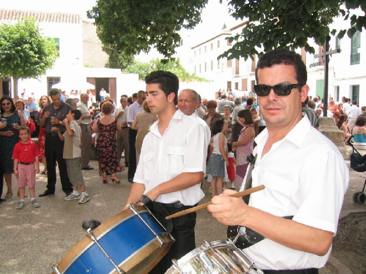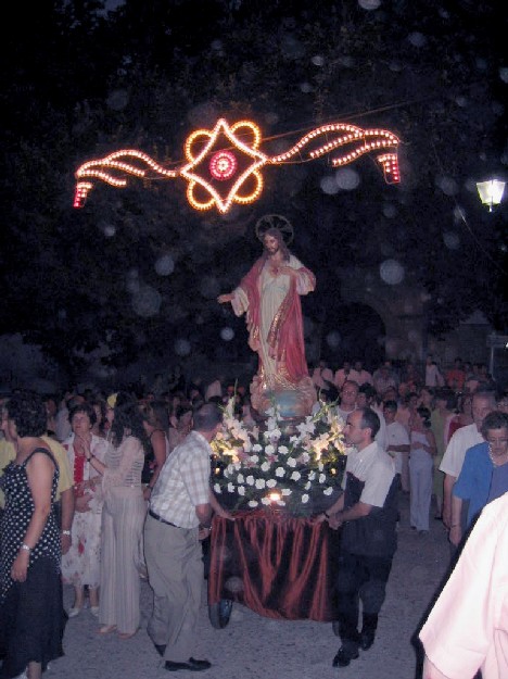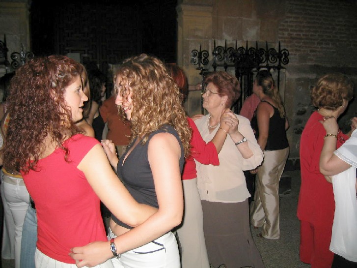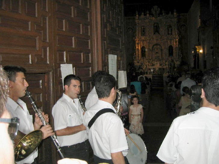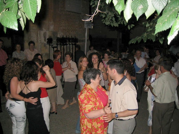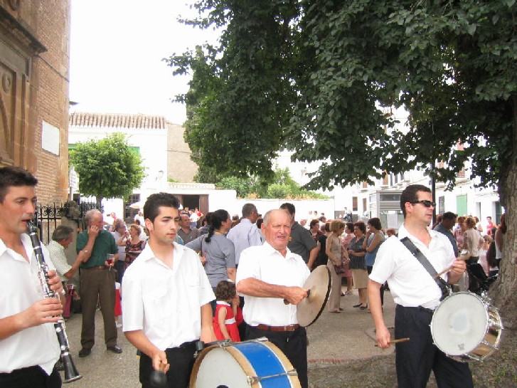 Hoy las fiestas las celebramos en la pista polideportiva. Hace unos años las celebrábamos al amparo de la Iglesia, en su puerta, bajo el ala del centenario olmo que tan frondosamente da sombra. Allí se ponían los puestos de dulce y se bailaba. La puerta de la Iglesia era lugar de encuentro de muchos eventos religiosos y profanos, a ella acudían gente de todos los pueblos y todos la llenaban, como no se llenaba en ningún otro pueblo cercano.